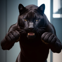The image depicts a digital artwork of a panther. It is not an actual photograph but rather a representation of a character designed to look like the animal, often used in films and