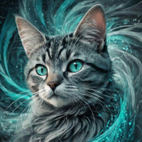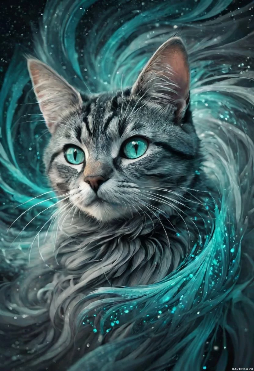 the calm expression of the feline. The overall style of the image appears to be digital artwork, showcasing a high level of detail and color harmony.