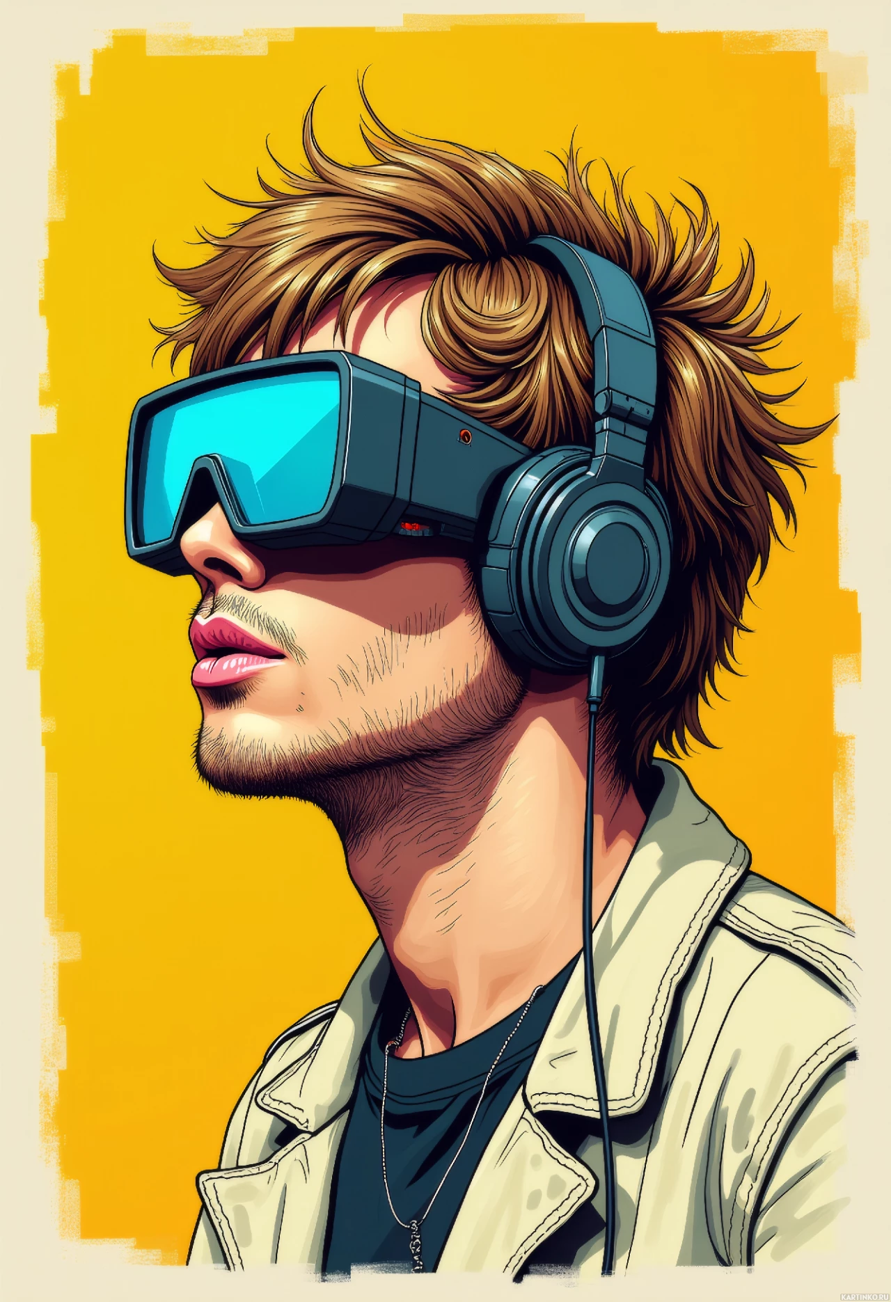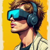 yellow tones dominating the background, suggesting an ambiance of modern technology or cyberpunk aesthetics. The style of the illustration has a sketchy, hand-drawn quality, indicating it may be a stylized piece rather than a realistic depiction.