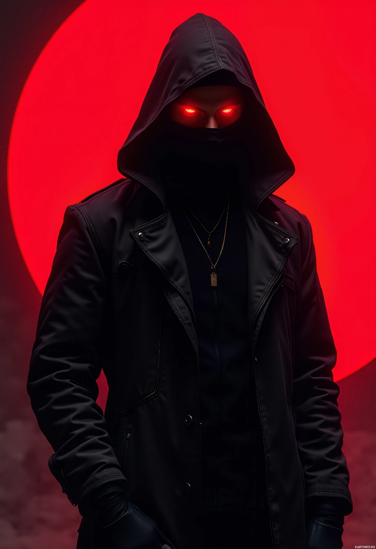 a dark hood and a mask that obscures their face, giving them an enigmatic or mysterious appearance. They are dressed in a jacket with zippers and pockets, suggesting they might be in a setting where such attire is practical or appropriate for the context of the image. The overall atmosphere is one of intrigue and suspense, possibly hinting at a narrative or story surrounding this character.