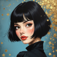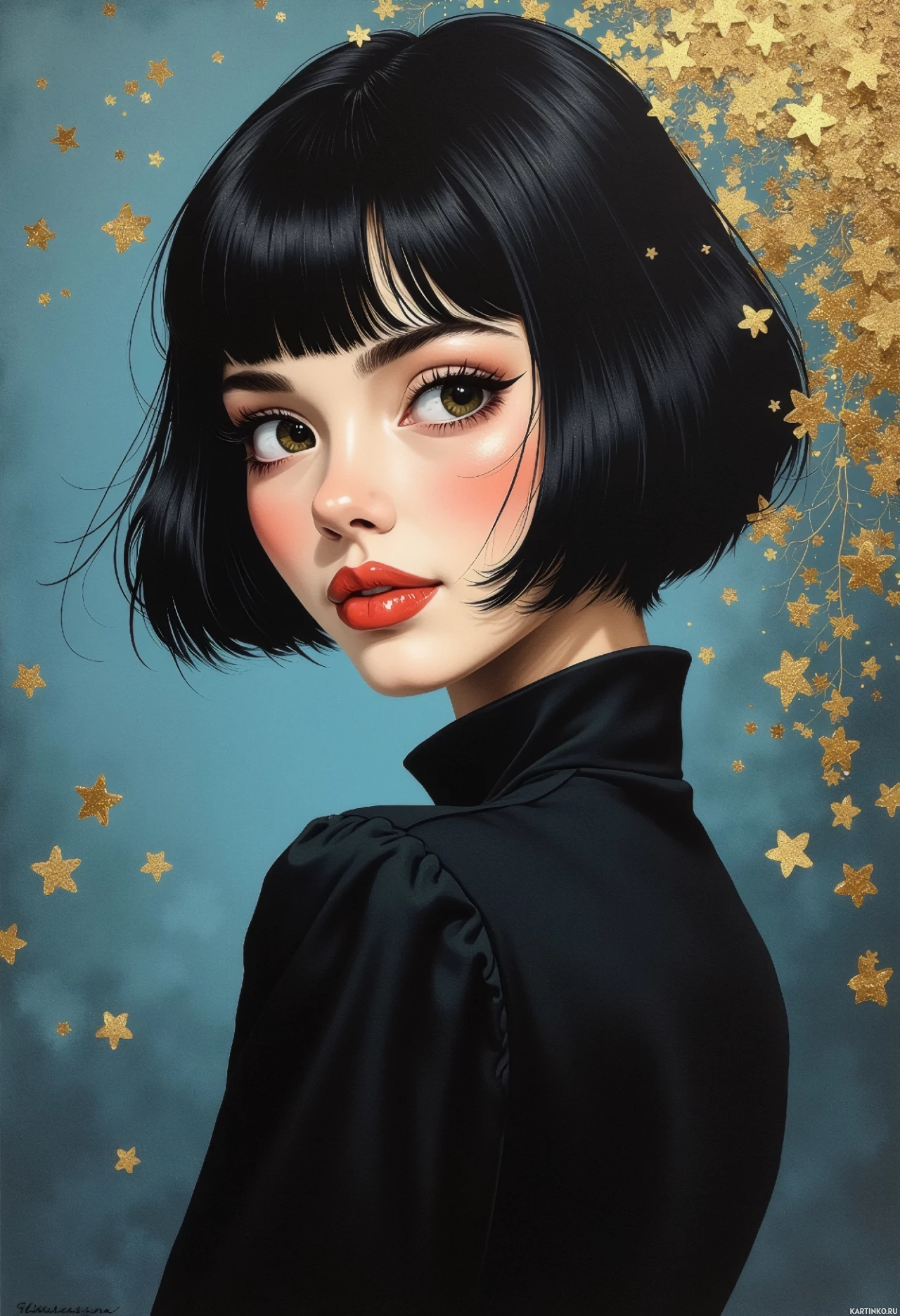 golden stars scattered around, contributing to the artistic style of the image.