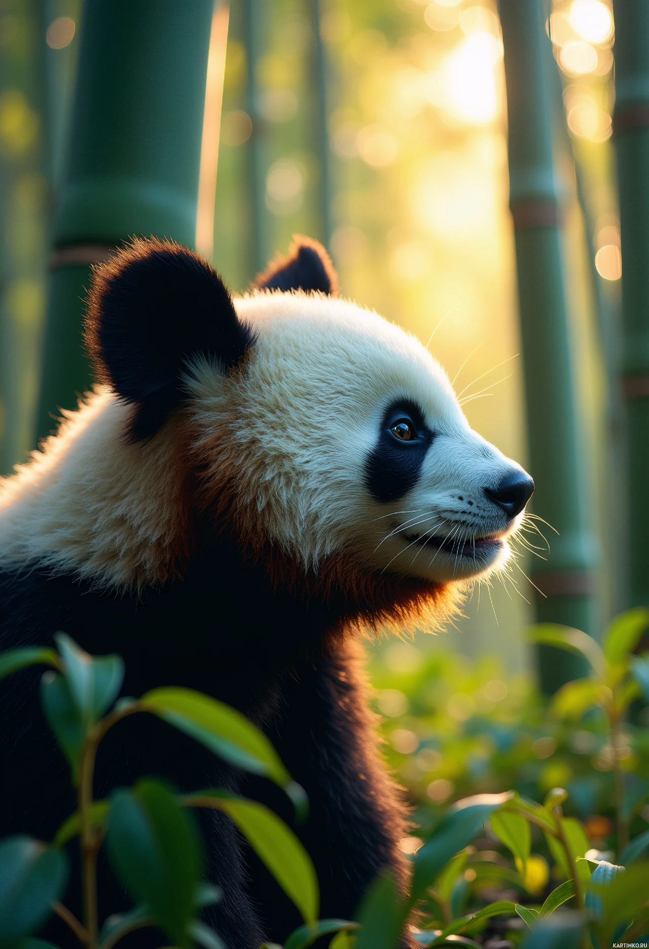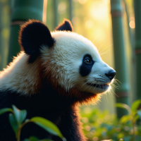 natural habitat, surrounded by bamboo. The panda is looking directly at the camera with