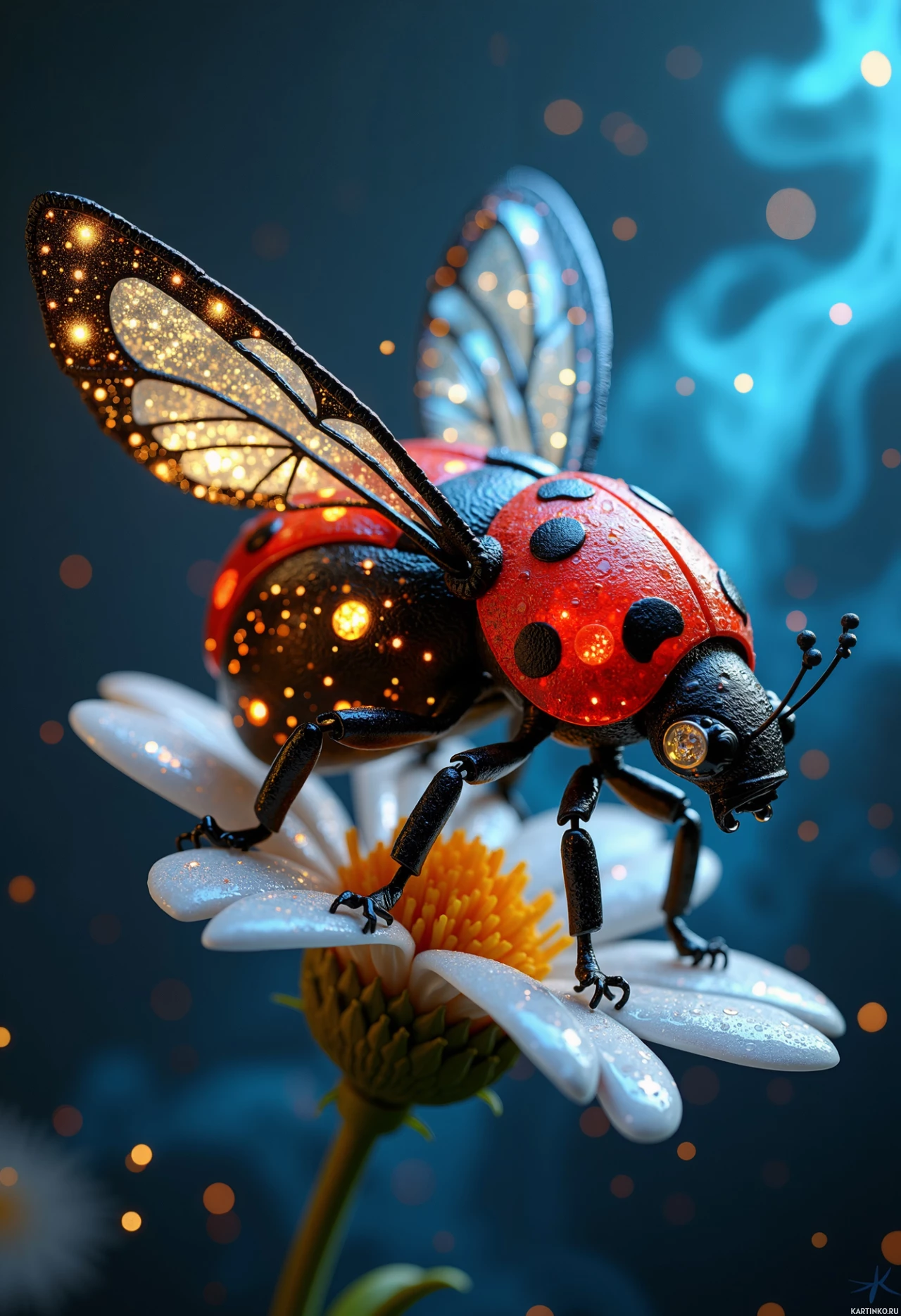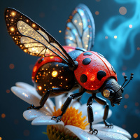 This is a digital artwork of a ladybug perched on