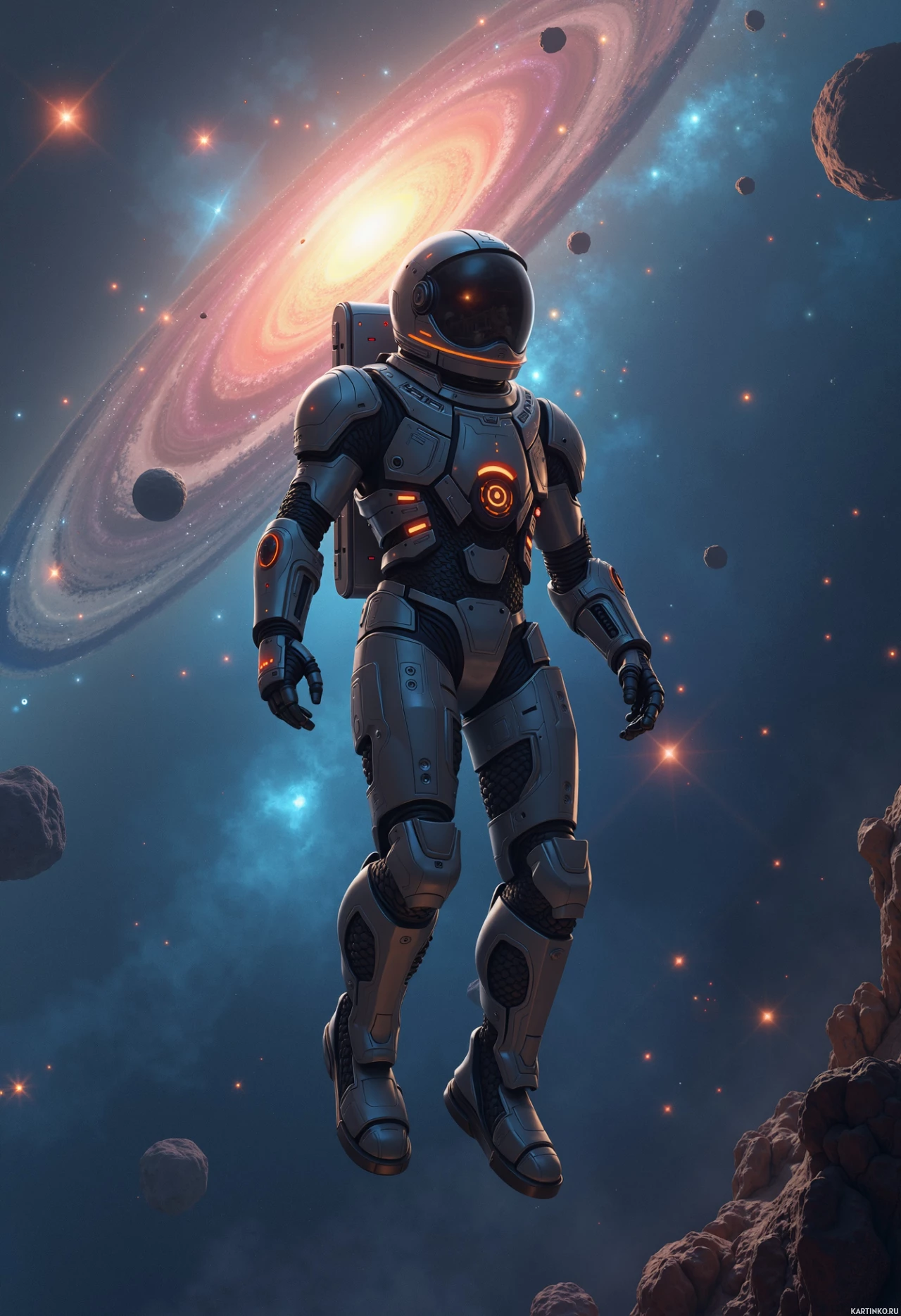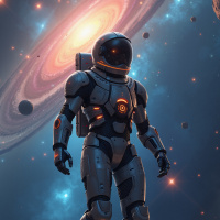 a science fiction-themed astronaut. The character is depicted in an advanced spacesuit, which appears to be of