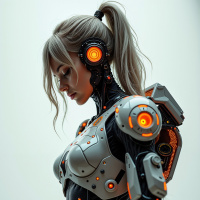 orange accents that could indicate advanced technology or power sources. It's worth noting that the character is often associated with