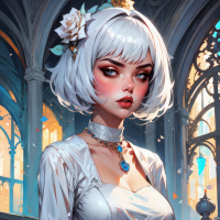 white hair, styled in an elegant updo. The character is wearing what appears to be historical or