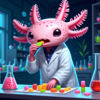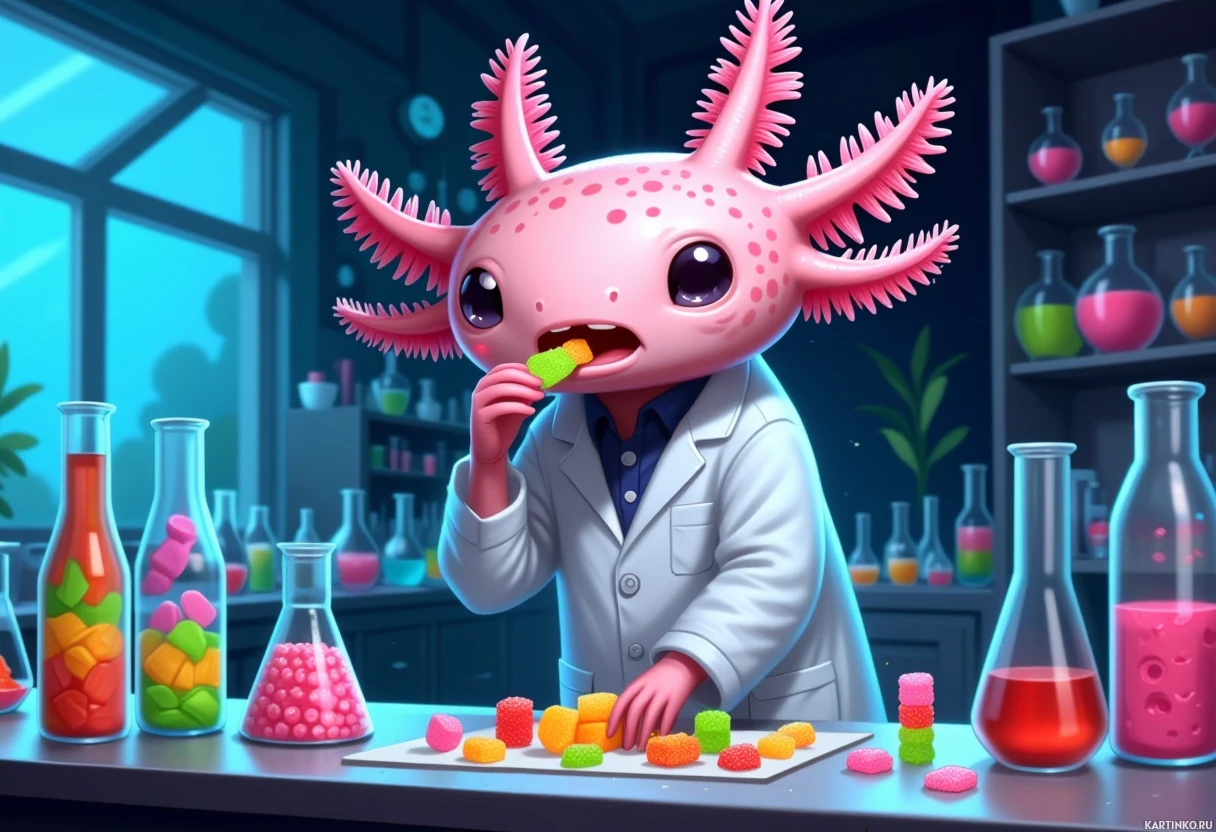 an animated character that resembles an axolotl, which is a type of salamander known for its regenerative abilities. This character has