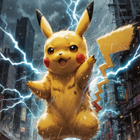 an intense battle or event. The character's arms are raised as if it is defending itself or performing an attack move with its electric powers. The overall impression is of a dynamic and exciting moment from the Pokémon universe.