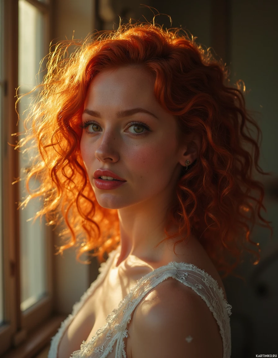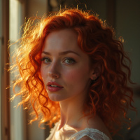 red hair, who appears to be looking off to the side. She has a fair complexion and is wearing what seems to be