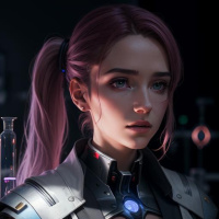 a young woman, dressed in a futuristic outfit that includes what seems to be an armor or protective clothing with intricate designs. Her attire is predominantly white and black, which adds to the sci-fi aesthetic of her appearance. The background is neutral and does not provide any additional context or information about the setting. The character's expression is calm and composed, suggesting she might be in