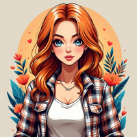 The image is an illustration of a red-haired girl. She has