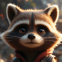 an animated character that resembles a raccoon, commonly known as Rocket Raccoon from the Marvel universe. He is depicted wearing a red and blue jacket with straps and buttons on it, which could suggest he's ready for some
