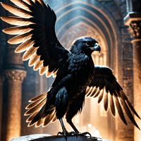 a stone structure that could be a part of an old castle or cathedral, characterized by arches and stone columns. There are no people visible in the image. The lighting suggests either sunlight streaming through a window or artificial lights illuminating the scene from above, creating