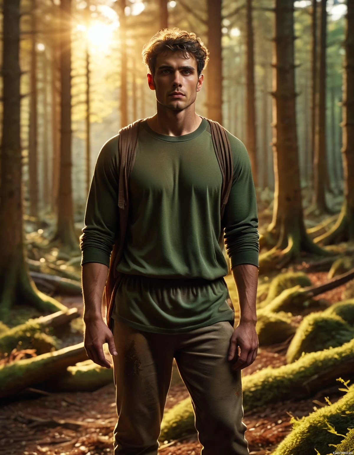 a serene atmosphere. The focus on the man against this backdrop emphasizes his presence in the wilderness. The image evokes themes of adventure, exploration, and possibly a sense of solitude or personal journey amidst nature.