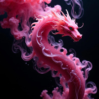 an ethereal presence against the dark background. The smoke or vapor is woven around the dragon's form, adding to the mystical quality of the scene. The overall composition suggests a dreamlike or imaginative setting that blends elements of reality with