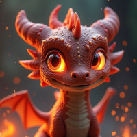 a textured design that could suggest scales. Behind the dragon are embers or sparks floating gently around, creating an impression of a mystical or fantastical setting. The overall style and elements within the image align with themes typically associated with fantasy and