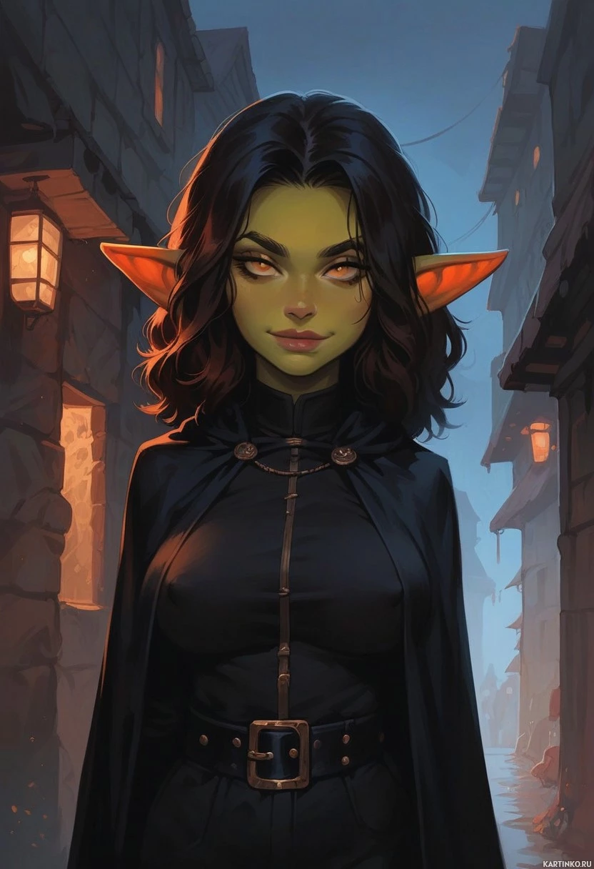 The image depicts a fantasy-themed character that appears to be a goblin. This creature has an elongated skull, pointed ears, and is wearing