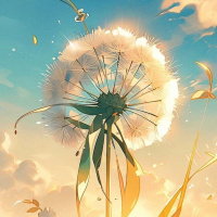 a serene scene with a dandelion seed head in the foreground. This is a fluffy white cluster of seeds that stands out against