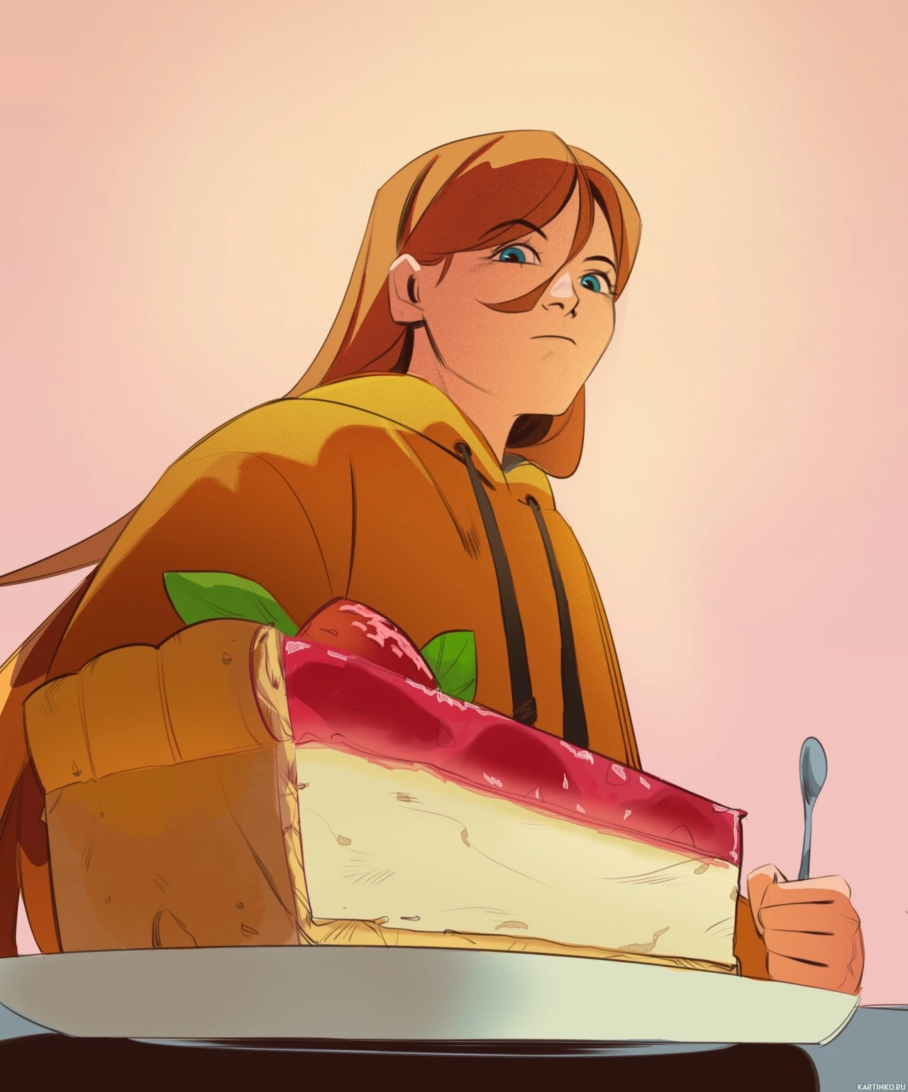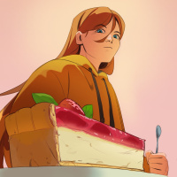 red hair. She is holding