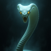 a fierce expression, its mouth agape in what appears to be a scream or hiss. The snake's scales are highlighted with a subtle blueish-