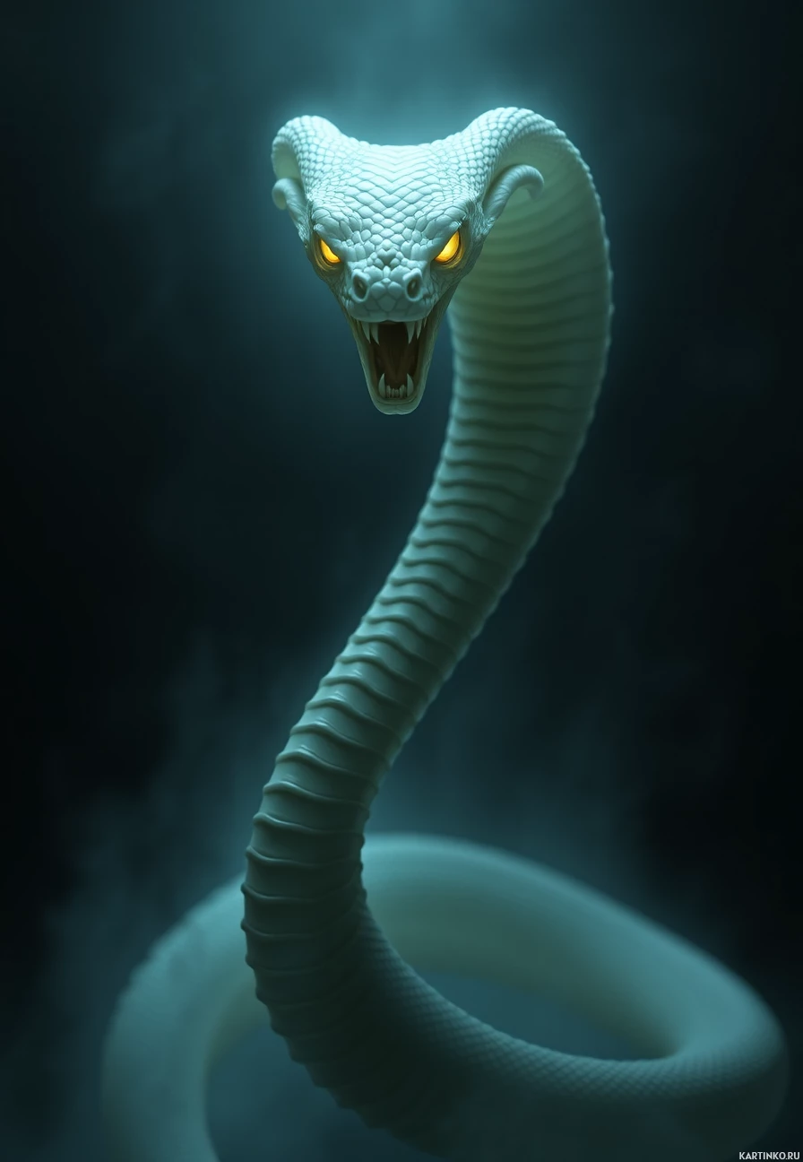 The image features a white serpent with