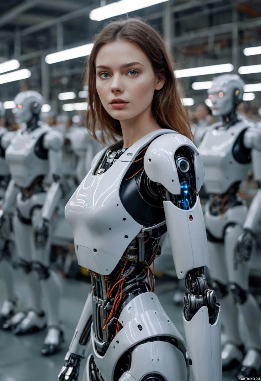 advanced robotics. The setting appears to be an industrial or manufacturing space dedicated to creating or assembling these