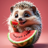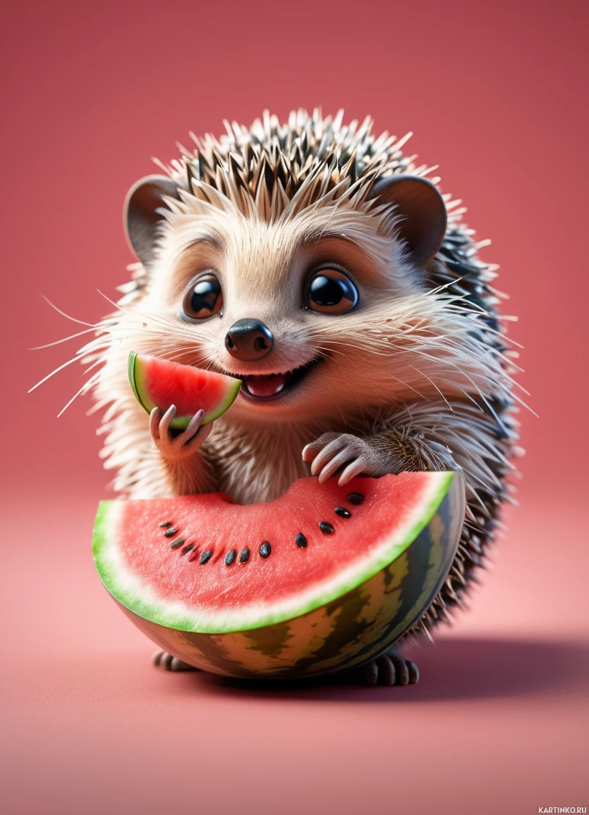 expressive eyes and a wide smile. The hedgehog has spines protruding from its back and is holding