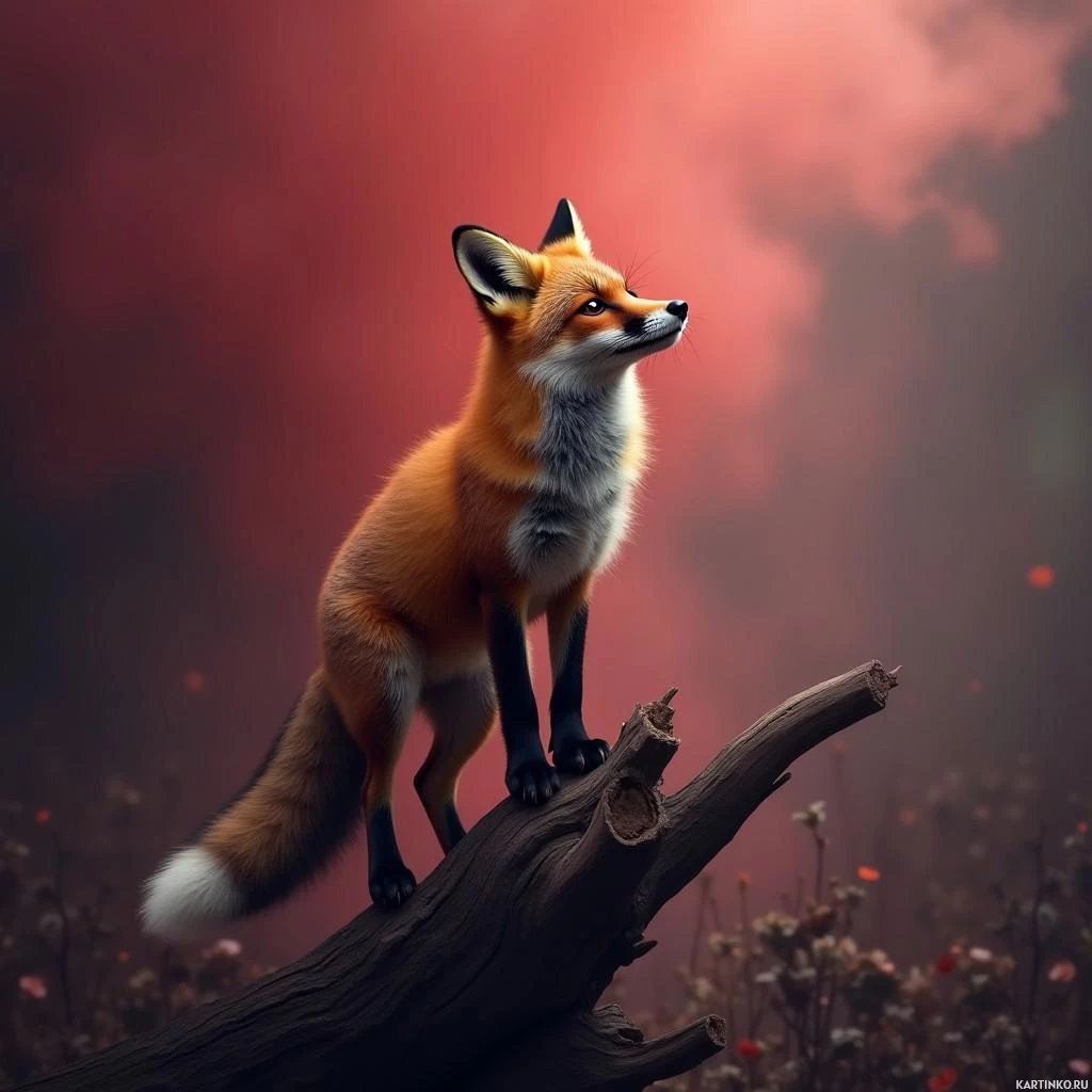 Фэнтезийное изображение рыжей лисы, сидящей на ветке Картинки с такими же тегами