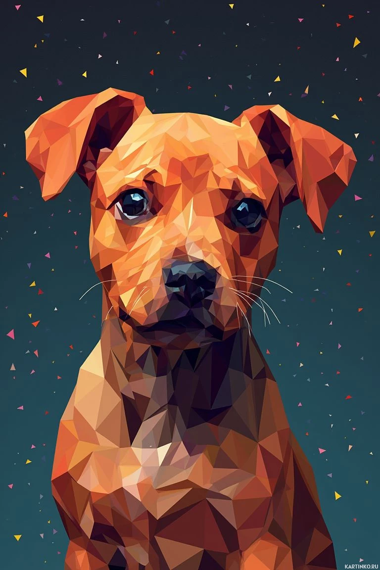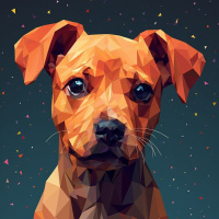 The image features a stylized, three-dimensional depiction of a dog. It's an artistic representation rather than a photograph. The dog is illustrated with