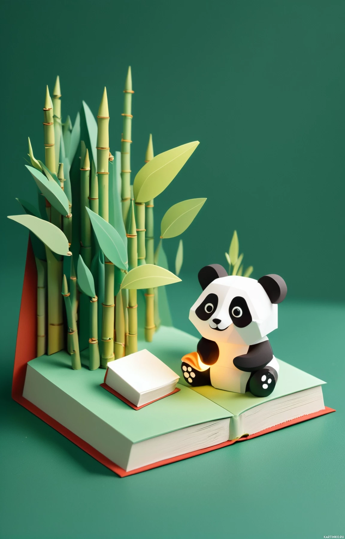 an open book, with bamboo sticks serving as the background. The book has a red spine and pages that appear to be made of paper or cardstock. The overall style of the picture suggests it might be related to art, crafts, or storytelling themes, given the inclusion of