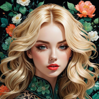 flower petals, which adds a whimsical and fantastical touch to the image. The overall style of the illustration combines elements of realism with a pop art sensibility, creating a unique and stylized portrait.