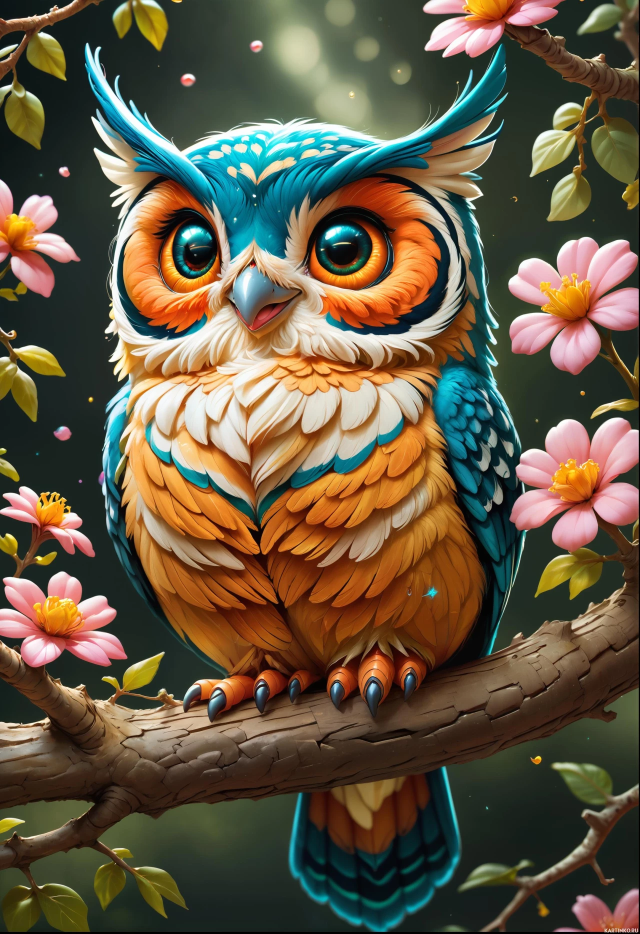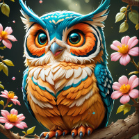 digital art intended to portray the owl in a whimsical and visually appealing manner.