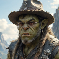 a fantasy setting. This character is wearing a hat and has a beard with spiky hair, giving him