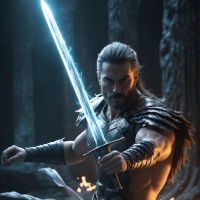magical energy emanating from his other hand, which he holds open in a gesture that could indicate the power or magic he wields. The overall atmosphere of the image suggests a scene of heroism or adventure in