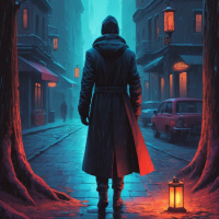 a dark coat that seems to have a hood, suggesting it might be windy or cold weather. The atmosphere is somewhat melancholic and solitary, with an overall ambiance reminiscent of a scene from