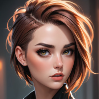 a young woman with short brown hair. She has striking blue eyes and is wearing a black leather jacket, which suggests she might be part of