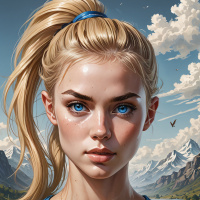 blue eyes and appears to be looking directly at the viewer. Her complexion is fair, and she has