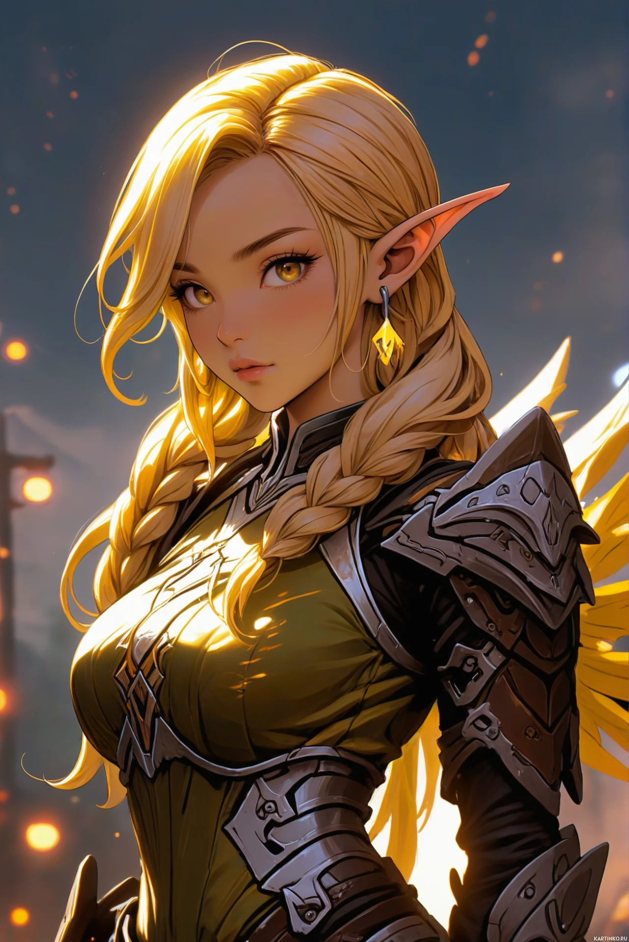 a blonde elf. The character has large