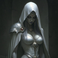 the dramatic effect of the scene. The character's design suggests she might be a warrior or guardian type from