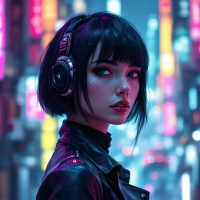 neon lights commonly found in cityscapes like Tokyo's districts. The overall tone of the image suggests a blend of technology and