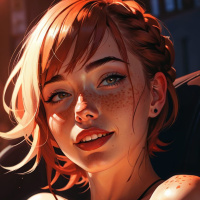 an indoor setting with warm lighting that casts a soft glow on her face, highlighting her features. Please note that this description focuses on the content of the image and does not include any personal or identifiable details.