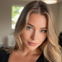 blonde hair and is looking directly at the camera with a slight smile. Her makeup includes defined eyebrows and she's wearing what appears to be