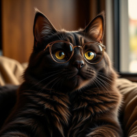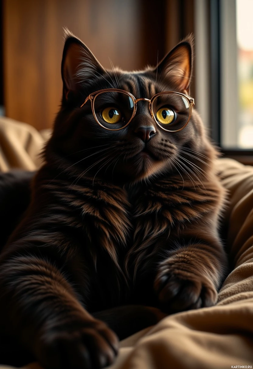 an expressive face and appears to be wearing a pair of round glasses that are too large for its head, adding a touch of humor and whimsy to the scene. The glasses have