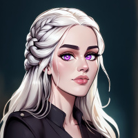 a female character with white hair styled in a braided hairstyle, commonly associated with the character Daenerys Targaryen from the television series "Game of Thrones." She has her eyes closed and appears to be smiling gently. Her expression is calm and serene. The background suggests