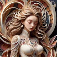 young woman with long, flowing blonde hair that cascades down her back in soft, wavy tendrils. Her eyes are closed, conveying