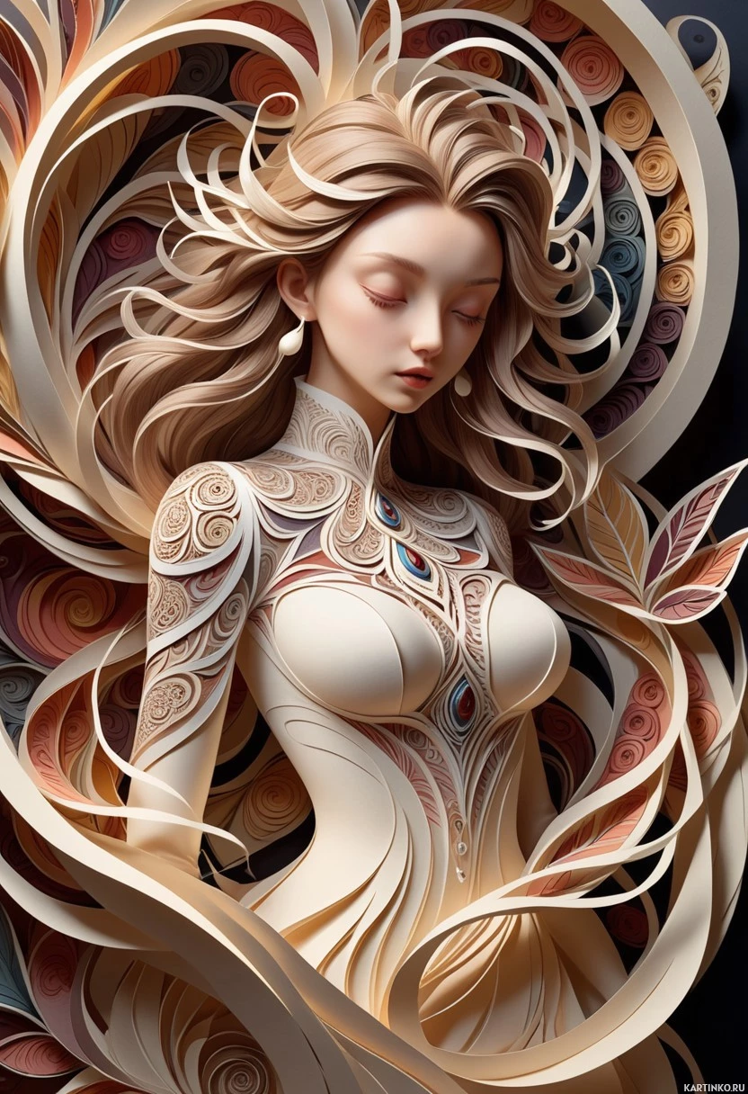 a lightweight material, such as silk or chiffon, which drapes elegantly around her slender figure. A