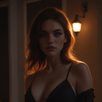 the Halloween season, possibly at a party or celebration. The lighting in the image is dim and warm, which adds to the spooky and festive ambiance. The shadows cast by the woman's body create a sense of depth and dimensionality, while the highlights on her skin give her a soft, ethereal glow.