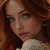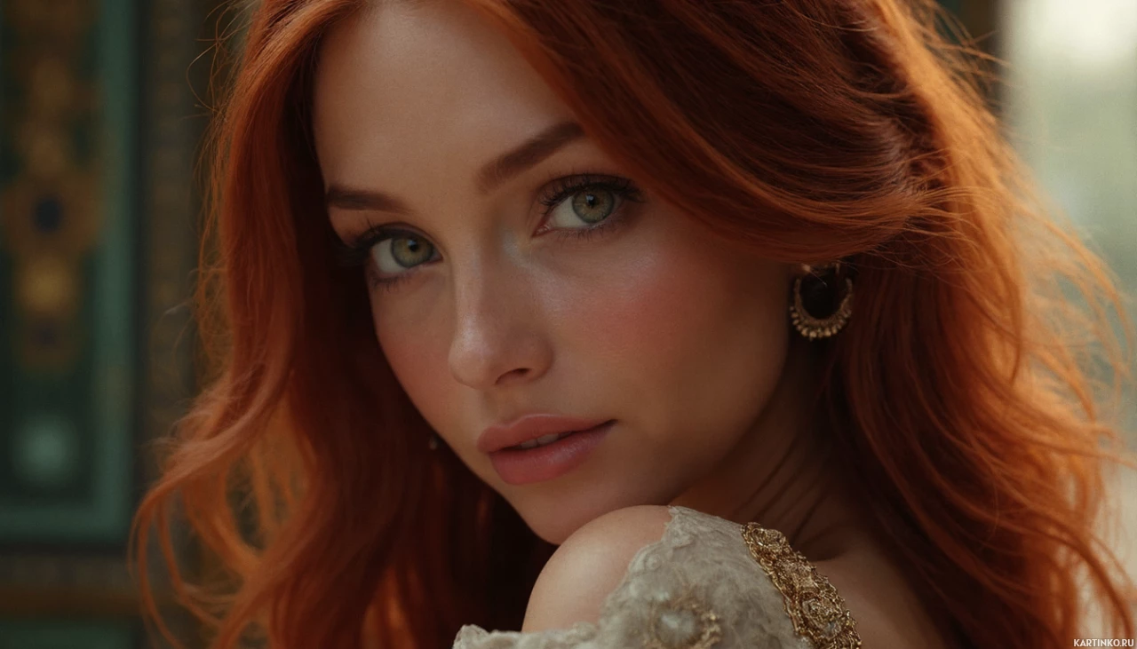 portrait of a young woman with striking features and a beautiful red-haired appearance.