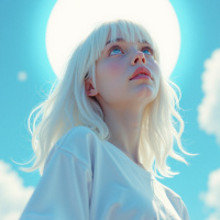 a subtle glow that suggests she may have been edited or filtered in some way to enhance her appearance. Her facial structure is delicate and refined, with