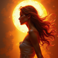wispy clouds scattered across it. The overall effect is one of serenity and tranquility, as if the woman has been transported to a place of peace and beauty. The image is rendered in exquisite detail, with every aspect of the scene carefully crafted to create a sense of realism and depth. The lighting is soft and natural, with no harsh shadows or bright highlights that might detract from the overall effect. Instead, the light seems to emanate from within the woman herself, illuminating her features and casting a warm glow over the surrounding landscape. Overall, this image is a masterful work of art, one that captures the beauty and serenity of a moment in time. It invites the viewer to step into its world and experience the peace and tranquility that it embodies.